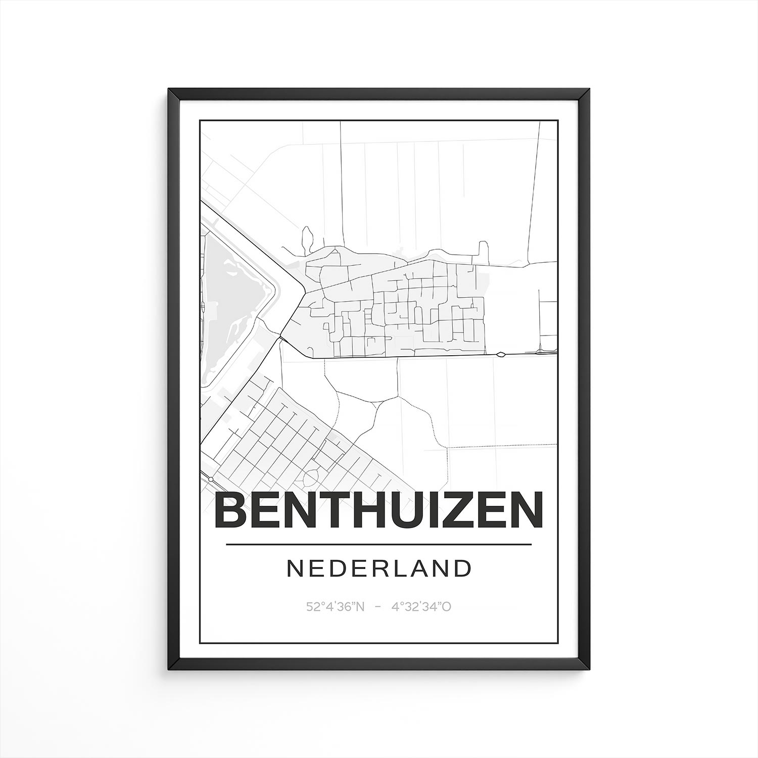 Kom je uit of woon je in Bentelo? Dan is deze stijlvolle plattegrond met de exacte coördinaten van Bentelo precies iets voor jou! Je kunt de poster van Bentelo – Overijssel bestellen in verschillende maten, met of zonder fotolijst, in dialect of met een markering op een bepaalde plek. Als cadeau is de plattegrond van Bentelo ook een aanrader!