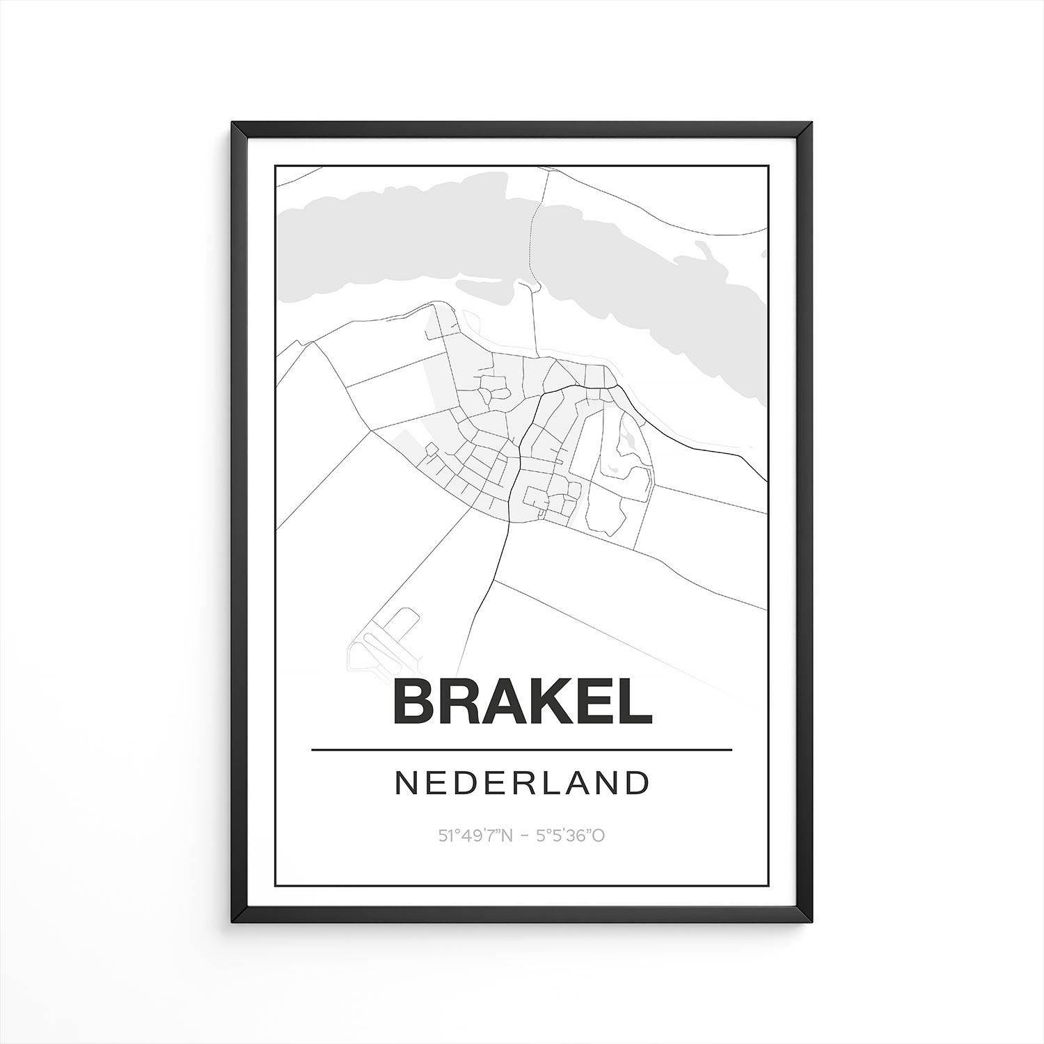 Poster van Brandwijk – Zuid-Holland. Je geboorteplaats, plek van je favoriete reis of je fijnste herinnering! Een unieke plattegrond van jouw plaats Brandwijk, in de provincie Zuid-Holland.