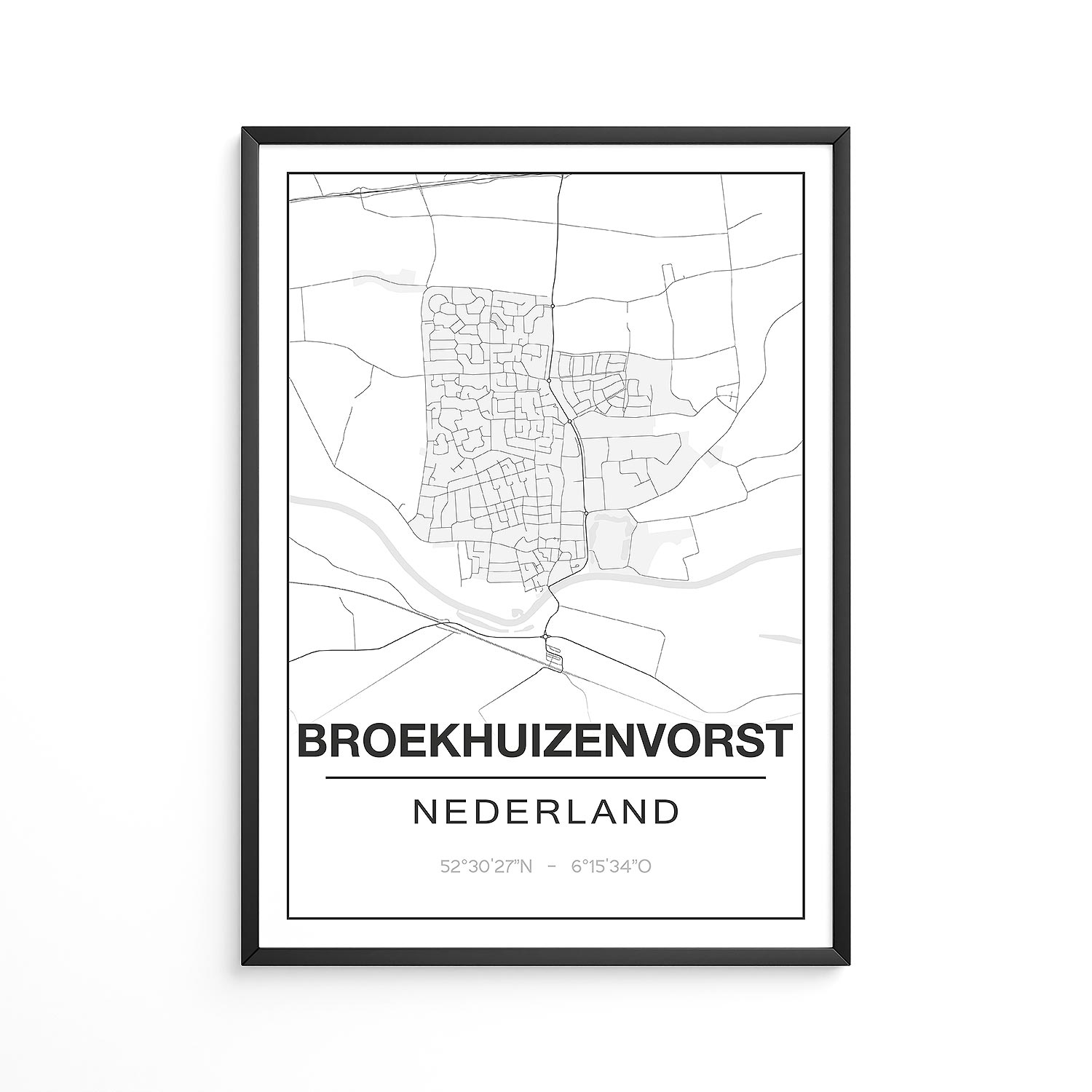 Poster van Broekland – Overijssel. Je geboorteplaats, plek van je favoriete reis of je fijnste herinnering! Een unieke plattegrond van jouw plaats Broekland, in de provincie Overijssel.