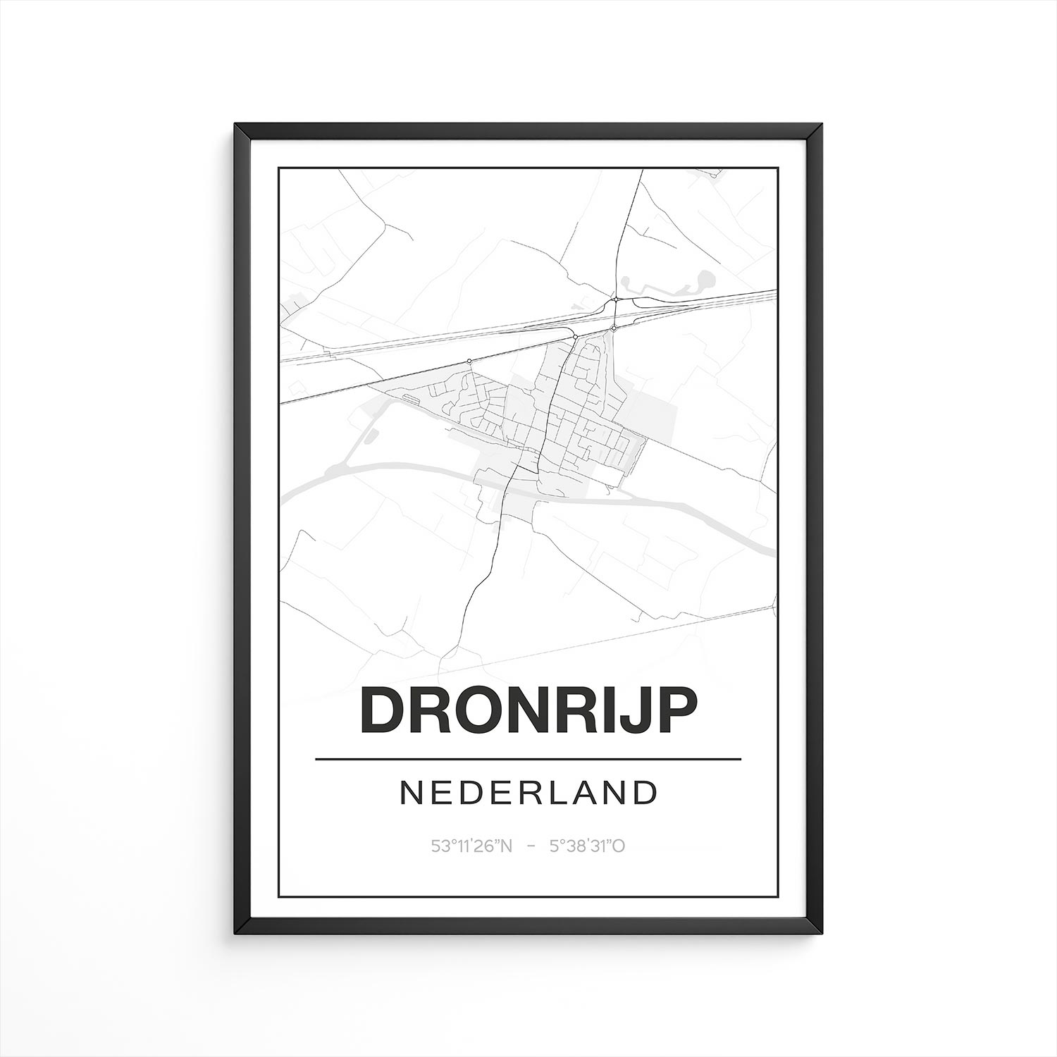 Je kunt samen met de poster van Drongelen – Noord-Brabant ook direct een fotolijst bestellen. De houten fotolijsten zijn beschikbaar in zwart, wit en eikenlook. De rand van de fotolijst is 15mm breed. Een eigen onderschrijft en schrijfwijze (b.v. dialect) is ook mogelijk. Ook een hartje of huisje op een bepaalde plek is geen probleem, zonder extra kosten.