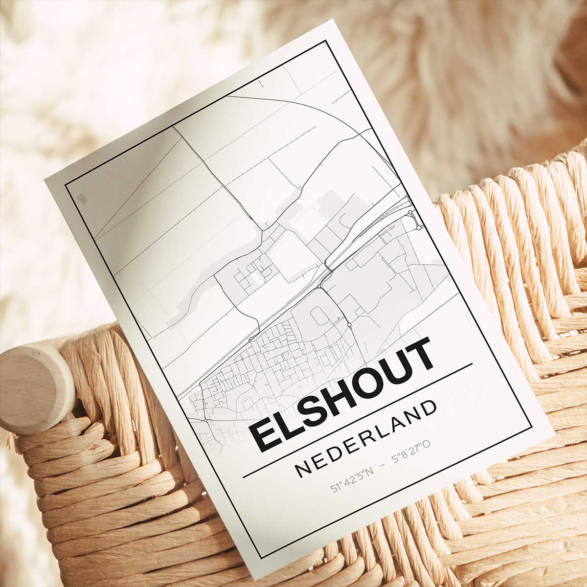 Kom je uit of woon je in Elshout? Dan is deze stijlvolle plattegrond met de exacte coördinaten van Elshout precies iets voor jou! Je kunt de poster van Elshout – Noord-Brabant bestellen in verschillende maten, met of zonder fotolijst, in dialect of met een markering op een bepaalde plek. Als cadeau is de plattegrond van Elshout ook een aanrader!