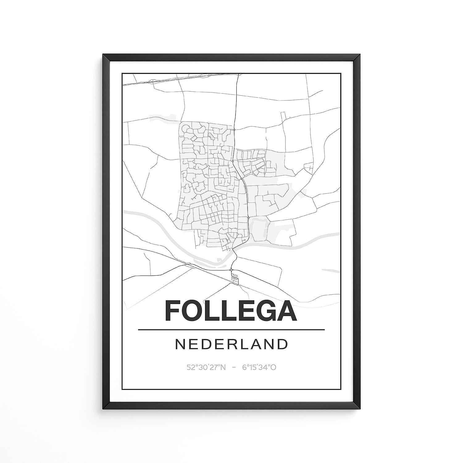 Kom je uit of woon je in Fochteloo? Dan is deze stijlvolle plattegrond met de exacte coördinaten van Fochteloo precies iets voor jou! Je kunt de poster van Fochteloo – Friesland bestellen in verschillende maten, met of zonder fotolijst, in dialect of met een markering op een bepaalde plek. Als cadeau is de plattegrond van Fochteloo ook een aanrader!