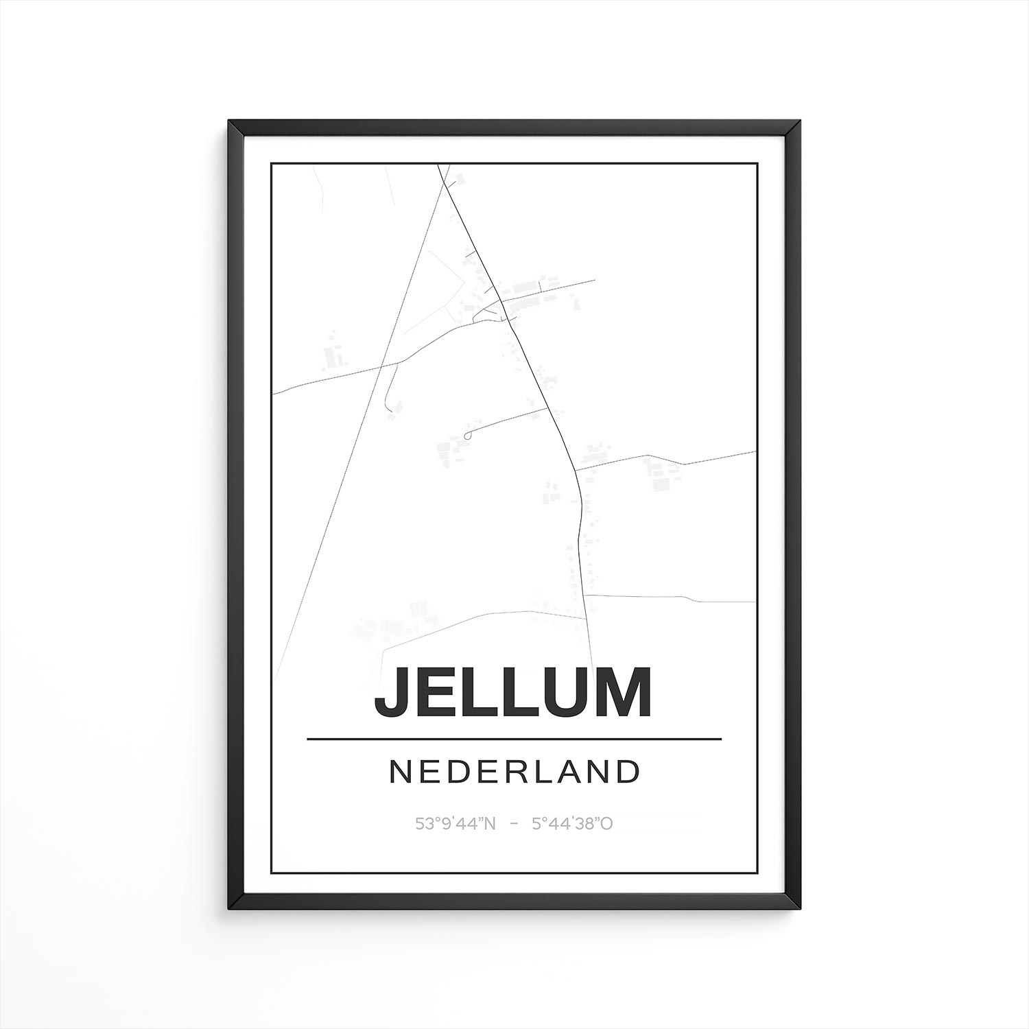 Kom je uit of woon je in Jelsum? Dan is deze stijlvolle plattegrond met de exacte coördinaten van Jelsum precies iets voor jou! Je kunt de poster van Jelsum – Friesland bestellen in verschillende maten, met of zonder fotolijst, in dialect of met een markering op een bepaalde plek. Als cadeau is de plattegrond van Jelsum ook een aanrader!