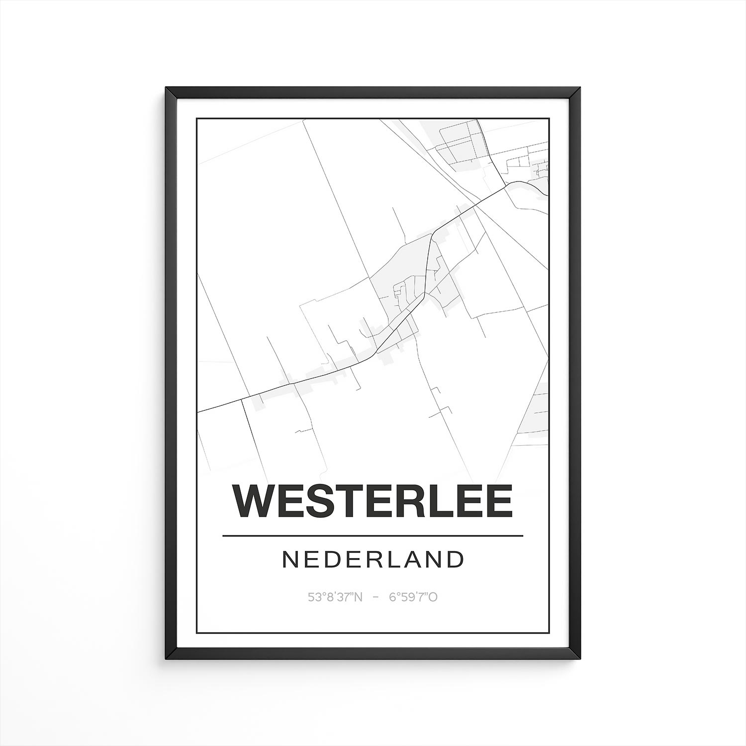 Kom je uit of woon je in Westernieland? Dan is deze stijlvolle plattegrond met de exacte coördinaten van Westernieland precies iets voor jou! Je kunt de poster van Westernieland – Groningen bestellen in verschillende maten, met of zonder fotolijst, in dialect of met een markering op een bepaalde plek. Als cadeau is de plattegrond van Westernieland ook een aanrader!