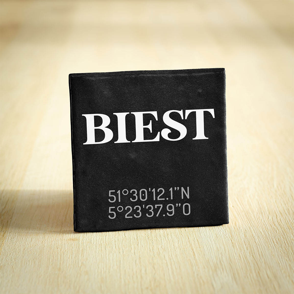 Tegeltje van Biest – Noord-Brabant met de exacte coördinaten. Een hip en modern keramieken tegeltje van Biest (Noord-Brabant) met coördinaten. Dit tegeltje van 10x10cm is een stijlvolle aanvulling voor je interieur en is verkrijgbaar in de kleuren wit en zwart. Ook erg leuk als cadeau bij een verhuizing vanuit of naar Biest!
