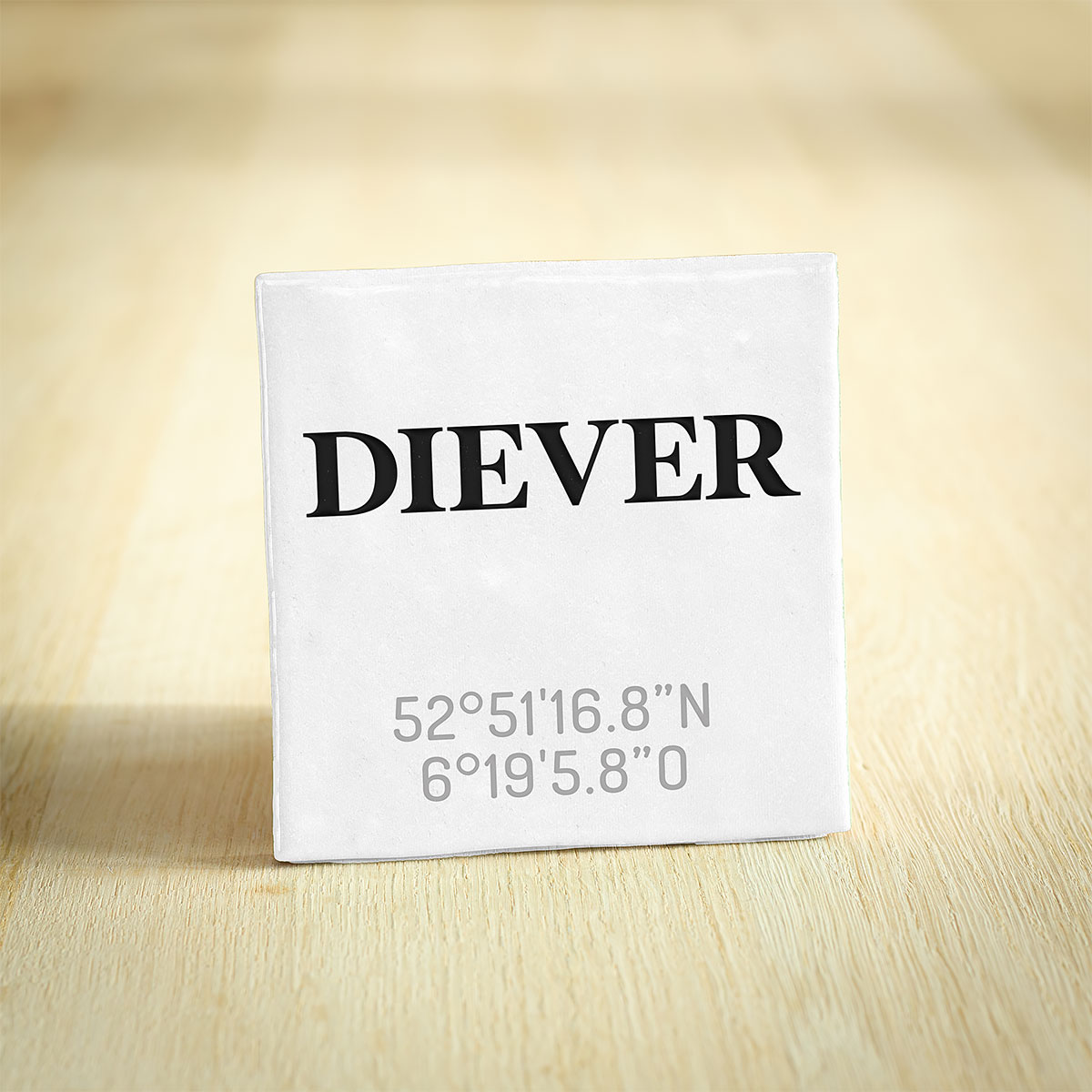 Tegeltje van Diessen – Noord-Brabant met de exacte coördinaten. Een hip en modern keramieken tegeltje van Diessen (Noord-Brabant) met coördinaten. Dit tegeltje van 10x10cm is een stijlvolle aanvulling voor je interieur en is verkrijgbaar in de kleuren wit en zwart. Ook erg leuk als cadeau bij een verhuizing vanuit of naar Diessen!