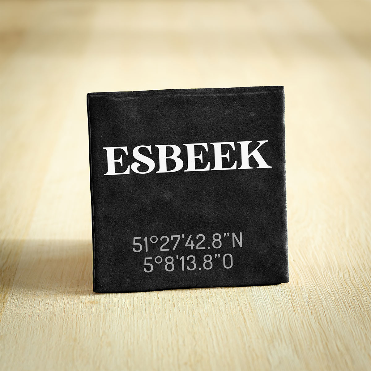 Tegeltje van Esbeek – Noord-Brabant met de exacte coördinaten. Een hip en modern keramieken tegeltje van Esbeek (Noord-Brabant) met coördinaten. Dit tegeltje van 10x10cm is een stijlvolle aanvulling voor je interieur en is verkrijgbaar in de kleuren wit en zwart. Ook erg leuk als cadeau bij een verhuizing vanuit of naar Esbeek!