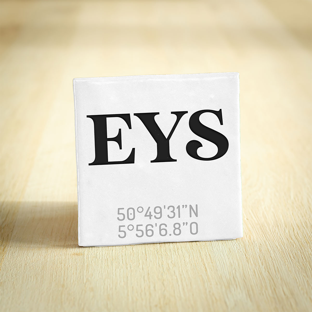 Tegeltje van Exmorra – Friesland met de exacte coördinaten. Een hip en modern keramieken tegeltje van Exmorra (Friesland) met coördinaten. Dit tegeltje van 10x10cm is een stijlvolle aanvulling voor je interieur en is verkrijgbaar in de kleuren wit en zwart. Ook erg leuk als cadeau bij een verhuizing vanuit of naar Exmorra!