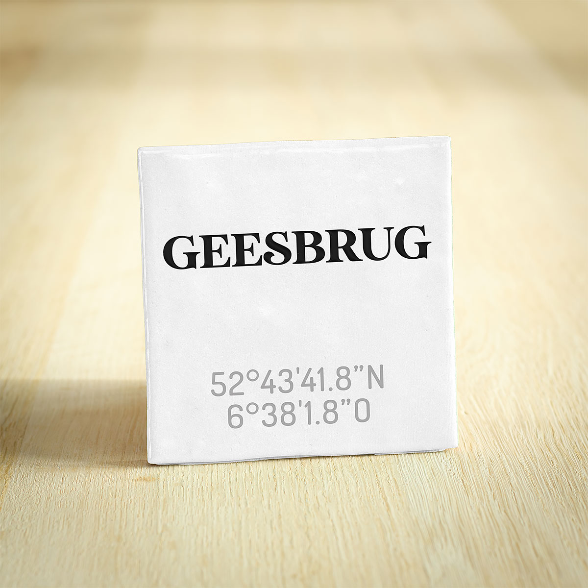 Tegeltje van Gees – Drenthe met de exacte coördinaten. Een hip en modern keramieken tegeltje van Gees (Drenthe) met coördinaten. Dit tegeltje van 10x10cm is een stijlvolle aanvulling voor je interieur en is verkrijgbaar in de kleuren wit en zwart. Ook erg leuk als cadeau bij een verhuizing vanuit of naar Gees!