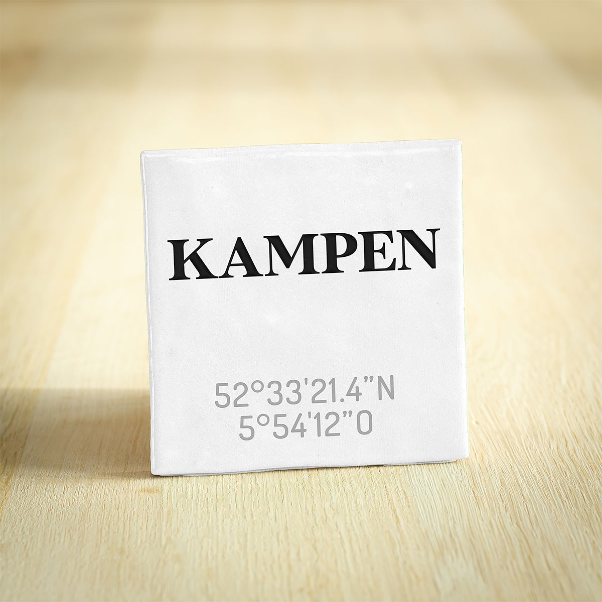 Tegeltje van Kamperland – Zeeland met de exacte coördinaten. Een hip en modern keramieken tegeltje van Kamperland (Zeeland) met coördinaten. Dit tegeltje van 10x10cm is een stijlvolle aanvulling voor je interieur en is verkrijgbaar in de kleuren wit en zwart. Ook erg leuk als cadeau bij een verhuizing vanuit of naar Kamperland!