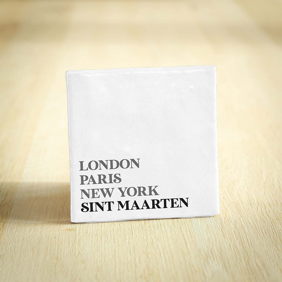 Tegeltje van Sint Maartensbrug – Noord-Holland. Een hip en modern keramieken tegeltje van Sint Maartensbrug (Noord-Holland) samen met London, Paris en New York. Dit tegeltje van 10x10cm is een stijlvolle aanvulling voor je interieur. Ook erg leuk als cadeau bij een verhuizing vanuit of naar Sint Maartensbrug!