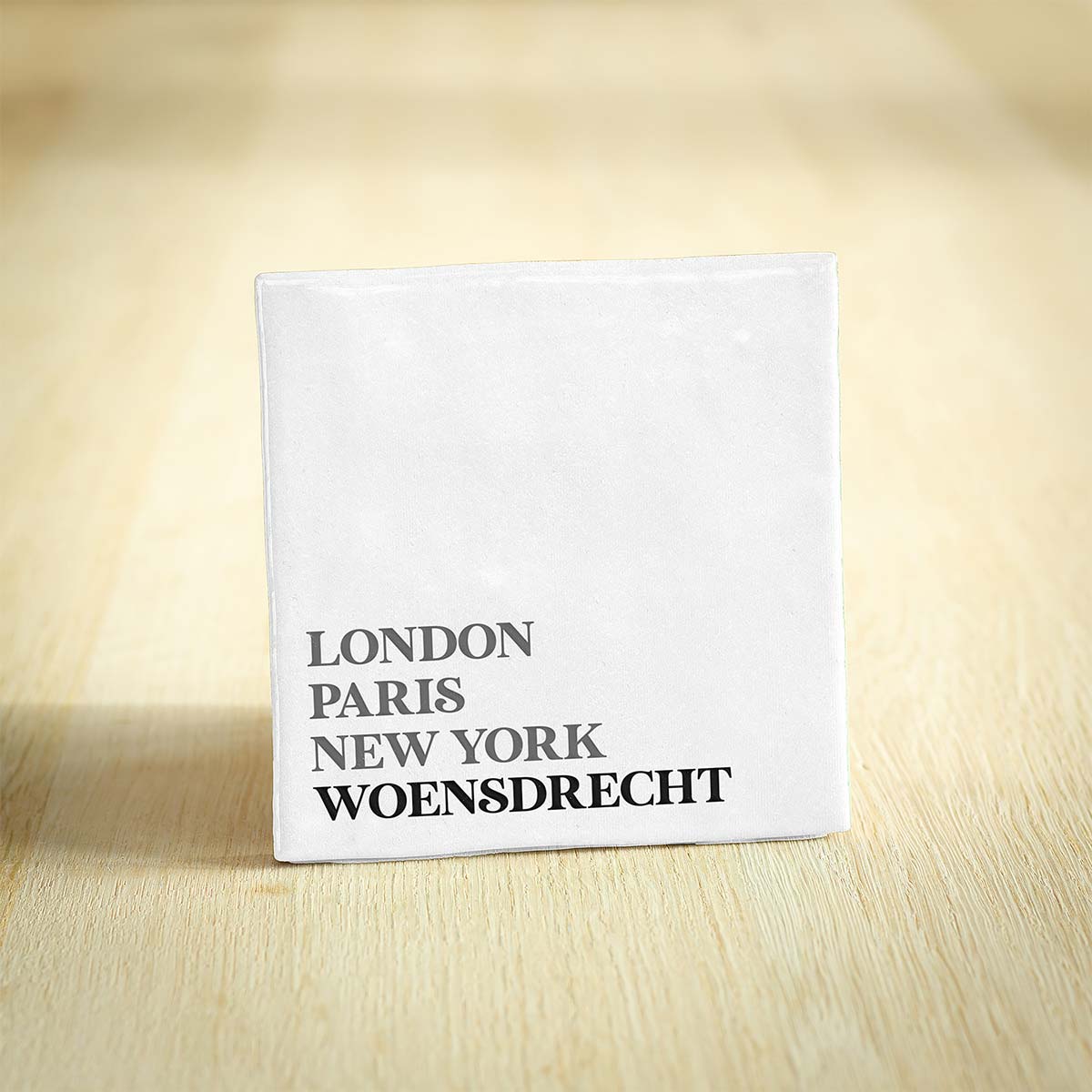 Tegeltje van Witteveen – Drenthe. Een hip en modern keramieken tegeltje van Witteveen (Drenthe) samen met London, Paris en New York. Dit tegeltje van 10x10cm is een stijlvolle aanvulling voor je interieur. Ook erg leuk als cadeau bij een verhuizing vanuit of naar Witteveen!