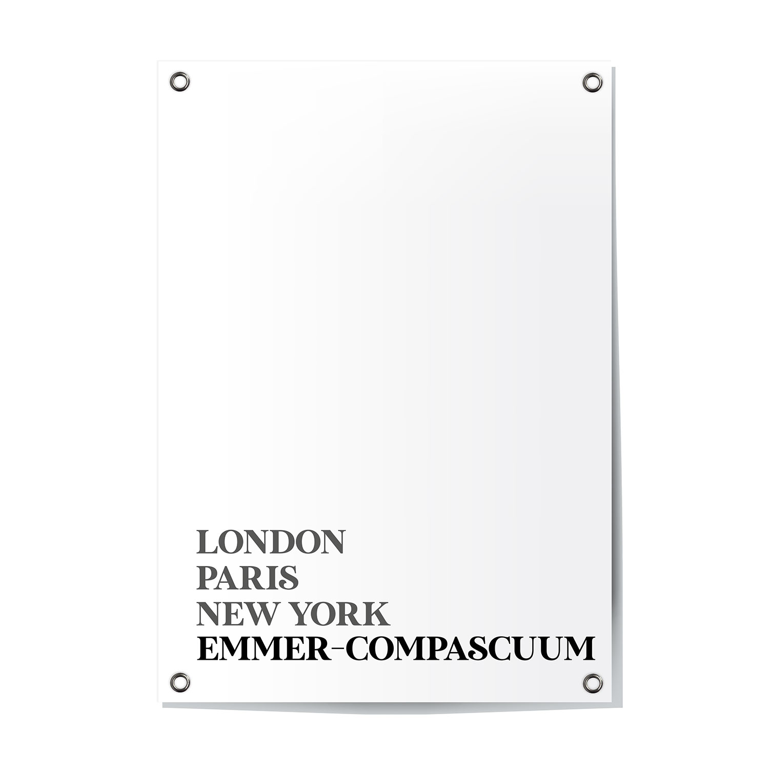 Tuinposter van Emmen – Drenthe. Deze moderne tuinposter van Emmen (Drenthe) samen met London, Paris en New York is een stijlvolle aanvulling voor je tuin! De tuinposter (60x80cm) is weerbestendig en voorzien van 4 ringen voor eenvoudige montage.