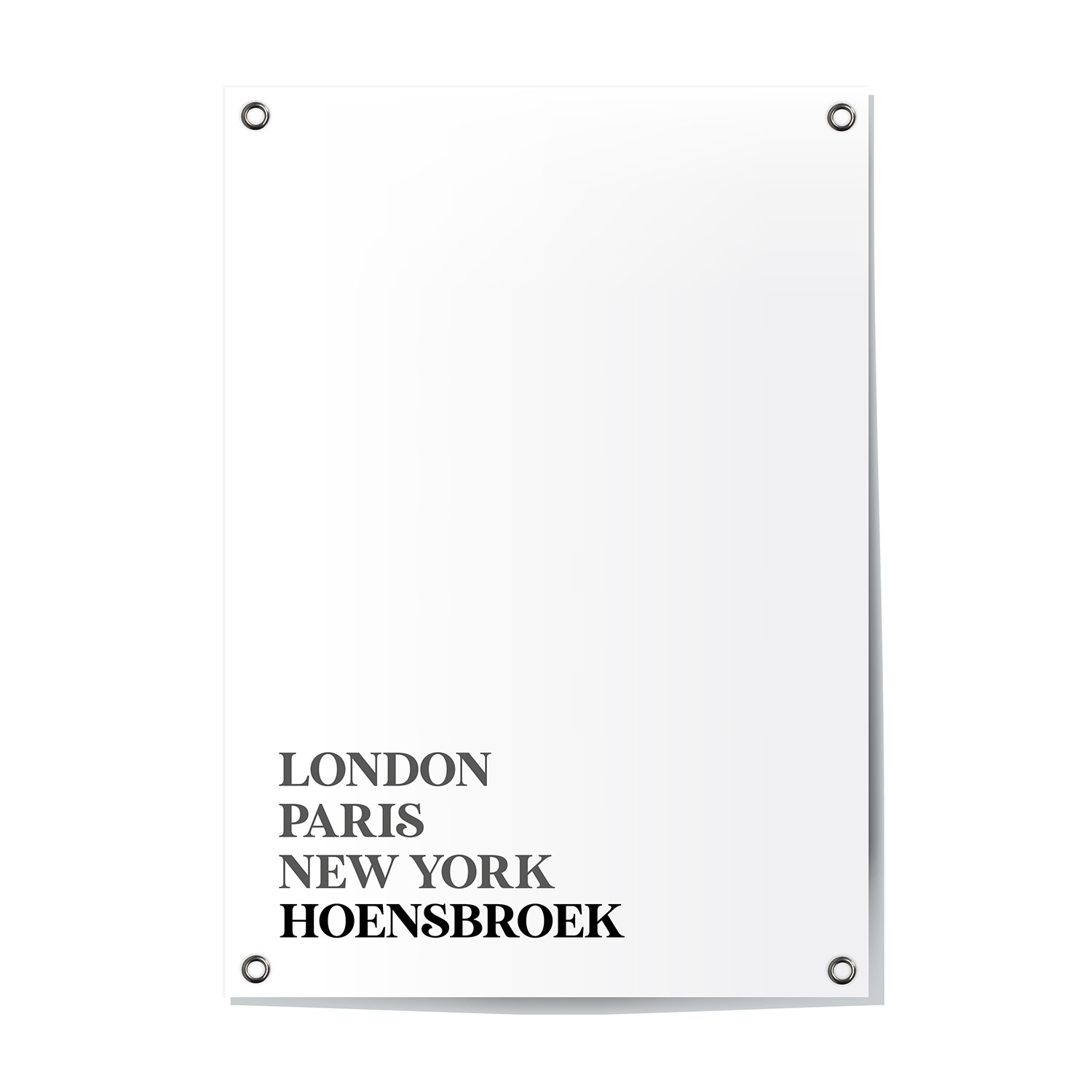 Tuinposter van Hoek van Holland – Zuid-Holland. Deze moderne tuinposter van Hoek van Holland (Zuid-Holland) samen met London, Paris en New York is een stijlvolle aanvulling voor je tuin! De tuinposter (60x80cm) is weerbestendig en voorzien van 4 ringen voor eenvoudige montage.