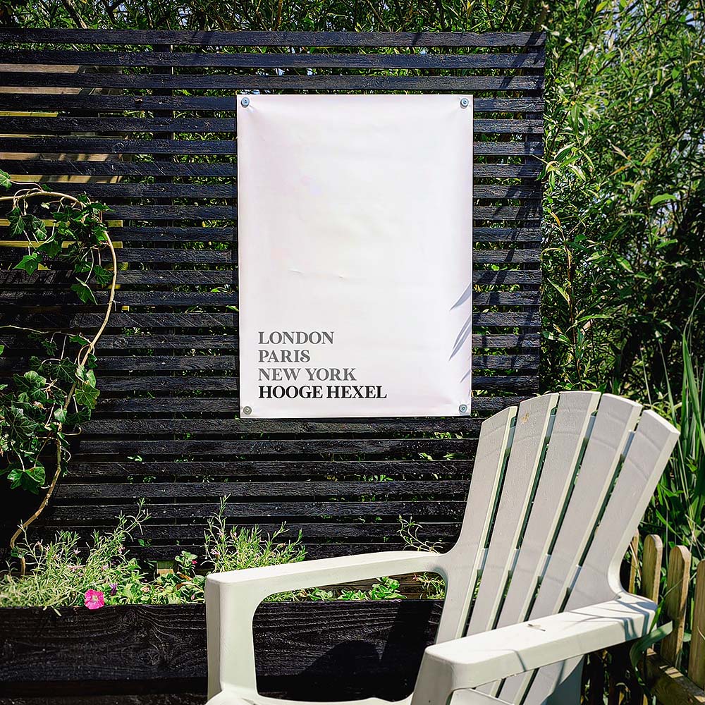 Wil je de tuinposter van Hooge Hexel personaliseren? Bijvoorbeeld in het dialect of met een eigen tekst? Bestel dan de tuinposter via Jouw Plaats.